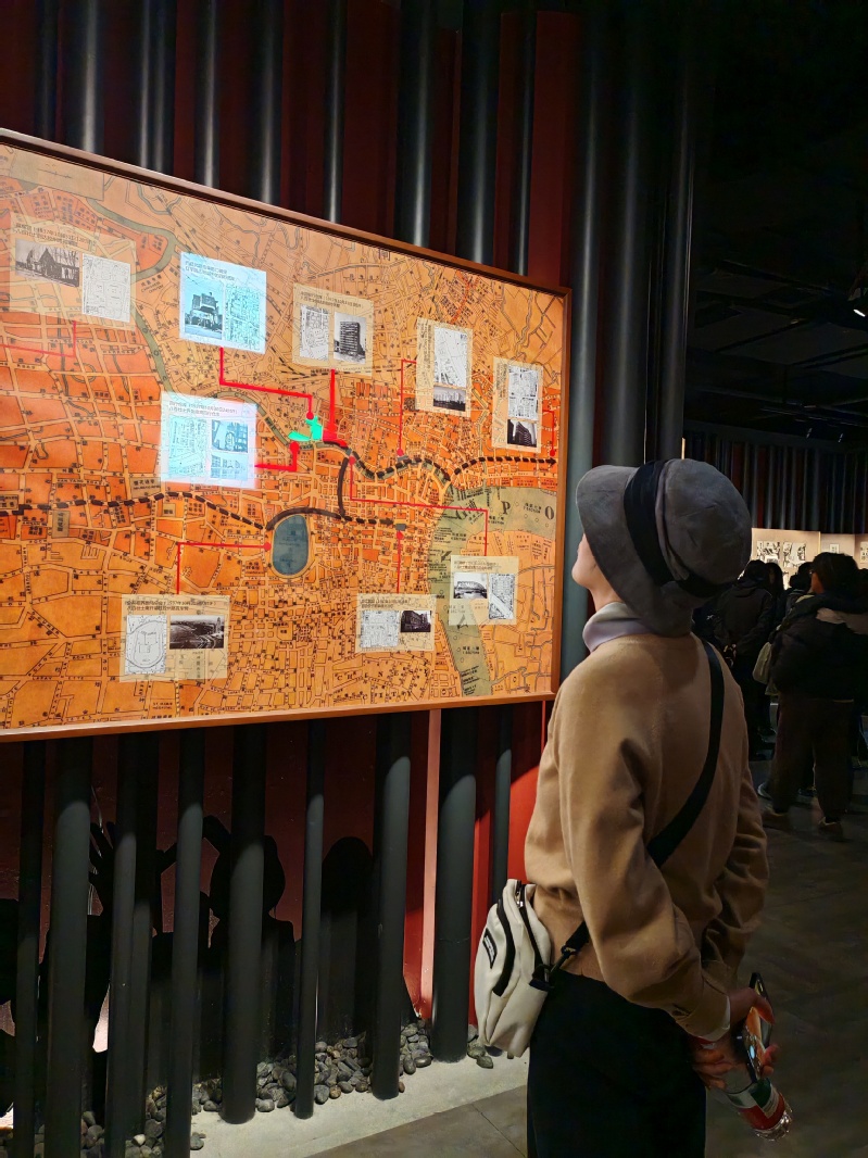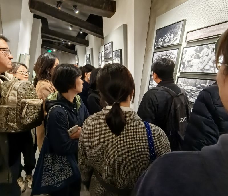 船行靠岸后,我们前往四行仓库抗战纪念馆。西墙上的累累弹孔,默默叙说着革命先烈血捍山河的英勇。走进馆内,一张张泛黄的照片、一件件珍贵的文物,生动再现了1937年淞沪会战中,谢晋元团长率领“八百壮士”坚守四行仓库、抗击日军的壮烈事迹。