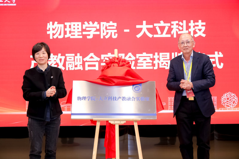 会上举行了“物理学院-大立科技产教融合实验室”揭牌仪式。该实验室是校友和学院积极响应国家号召、促进“教育链、人才链与产业链、创新链”有机衔接战略的重要实践,标志着学院学科优势与企业产业资源对接进入新阶段。