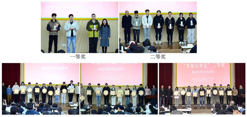 会后还举行了“青春万步走”活动颁奖仪式,由学院团委副书记邓小丽主持,与会领导、班导师和辅导员为获奖同学代表颁奖。这一仪式旨在鼓励物理学子在潜心科研的同时,坚持体育锻炼,以强健的体魄支撑科研报国的理想。