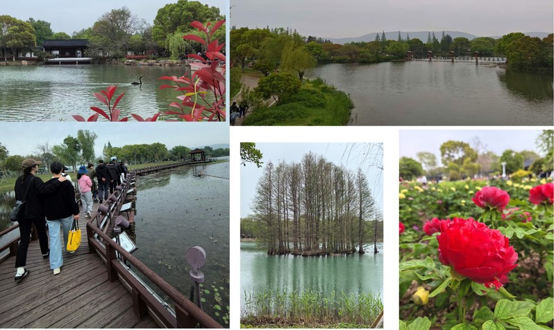 尚湖依虞山而卧,湖光山色交相辉映。尚湖和虞山因先周“姜子牙钓鱼、愿者上钩”、“姬虞仲避而让贤”的传说而得名。四月的尚湖,是春天最温柔的笔触,每一句都是诗,每一帧都是画。景区内水榭楼台、湖桥串月,两岸樱花纷飞、杨柳依依,勾勒出一幅温婉动人的江南春日画卷。和别处不同的是,作为江南最大牡丹观赏园,园内九大色系、数万株精品牡丹正值盛放期,随处可以欣赏到各色的牡丹。红、粉、黄、紫、白、绿、黑等各色牡丹层层叠叠,单朵硕大饱满、花瓣繁密、雍容华贵,织就绚烂花海。教职工们或在九曲桥上蜿蜒漫步、或凭栏远眺、或驻足花间拍照、或轻声交流,细心品味这江南水乡独有的春日韵味,欢声笑语在湖畔桥间、陇上花下回荡。